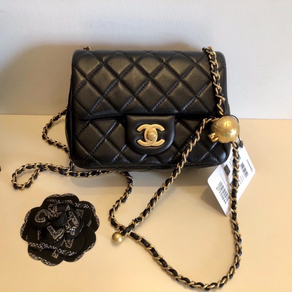 샤넬 골드볼 쁘띠삭 미니 램스킨 숄더백 블랙 금장 AS1786
