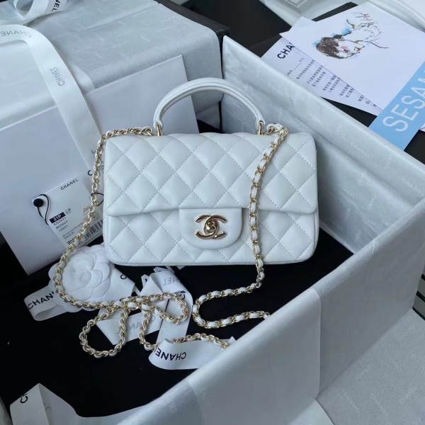 샤넬 뉴미니 탑핸들 플랩백 램스킨 금장 AS2431