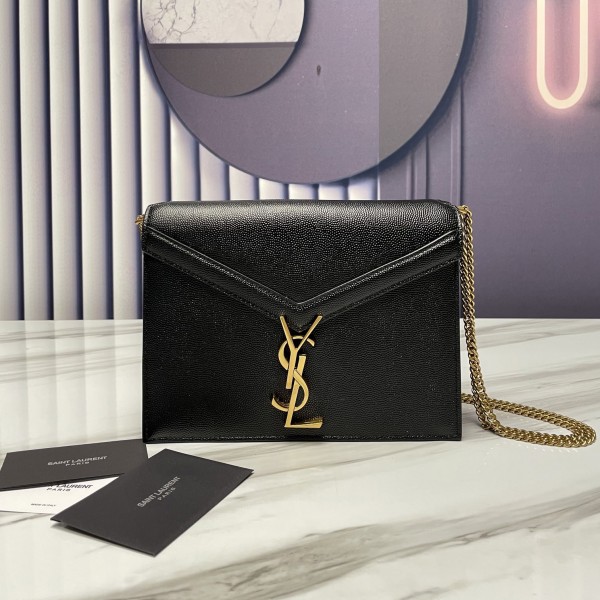 생로랑 카산드라 모노그램 미디움 레더 체인 숄더백 블랙 금장 532750 BOW0W 1000 > 생로랑