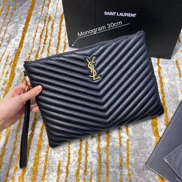 생로랑 업타운 엔벨로프 모노그램 레더 클러치 백 블랙 565739 1GF0J 1000
