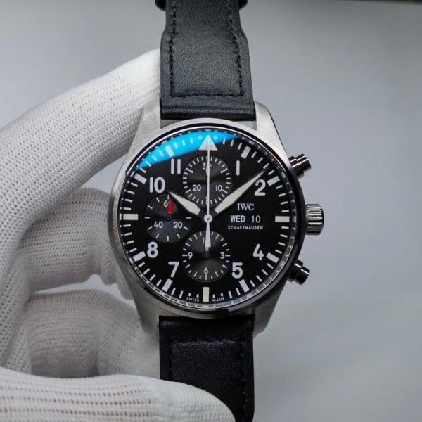 IWC 아이더블유씨 파일럿 워치 크로노그래프 블랙 43MM 가죽밴드 시계 IW377709
