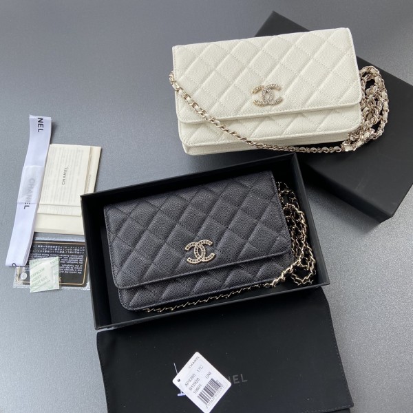샤넬 23A CC로고 크리스탈 장식 WOC 금장 2칼라 AP3395