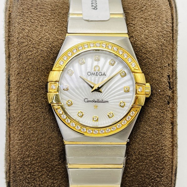 오메가 여성 시계 컨스텔레이션 쿼츠 27MM 금장 123.15.27.60.55.004