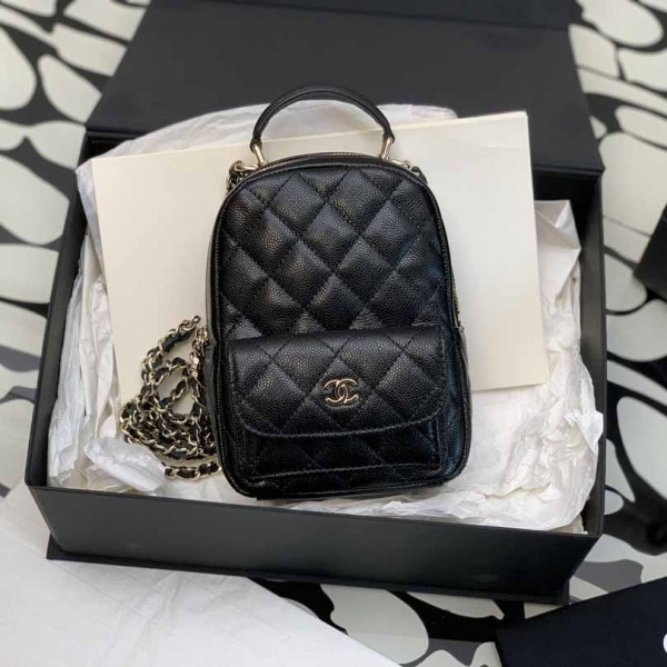 샤넬 23FW 라운드 탑핸들 퀼팅 백팩 블랙 AP3753