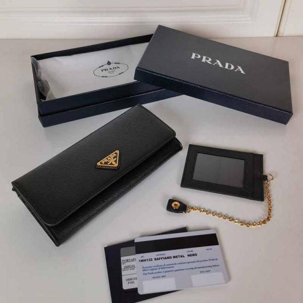 프라다 1MH132 QHH F0002 사피아노 플랩 장지갑