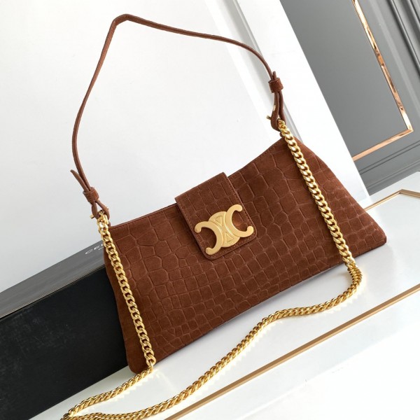 셀린느 윌튼 클러치 크로커다일 엠보싱 스웨이드 체인 숄더백 113673FFJ.19BR