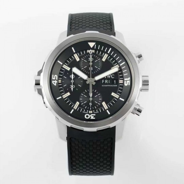 IWC 아쿠아타이머 크로노그래프 블랙 다이얼 러버 남성용 44mm 시계 2칼라 IW376803