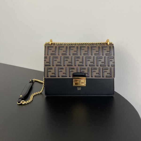 펜디 블랙 카프스킨 FF 로고 칸 아이 체인 여성 숄더백 8BT315 PC1222 BA00 > 가방