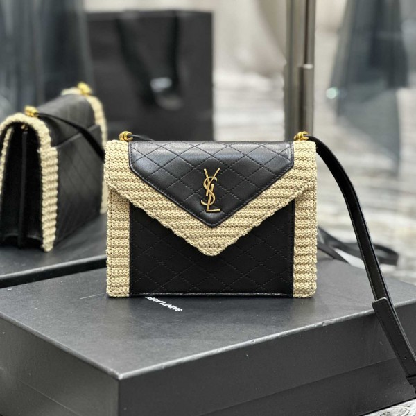 생로랑 여성 숄더백 크로스백 Black Gaby Raffia Leather Shoulder Bag 18797494_695503AAAVP