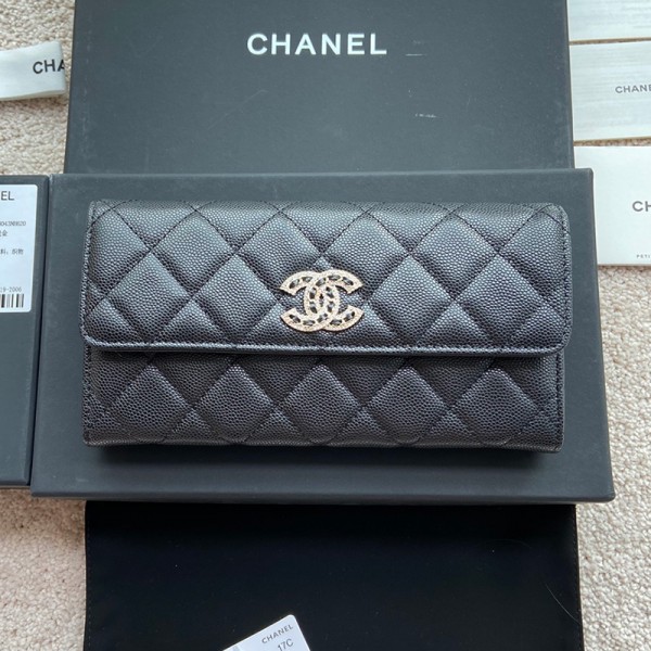 샤넬 22 크리스탈 가죽체인로고 똑딱이 카프스킨 장지갑 2칼라 AP2740 > 지갑