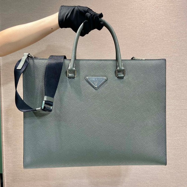 프라다 삼각로고 패치 사피아노 레더 남성 토트백 2VG101