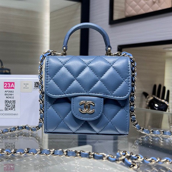 샤넬 탑핸들 베니티 체인 블랙 램스킨 미니백 2칼라 AP2682