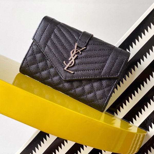 생로랑 여성 캐비어 장지갑 블랙 3칼라 358094