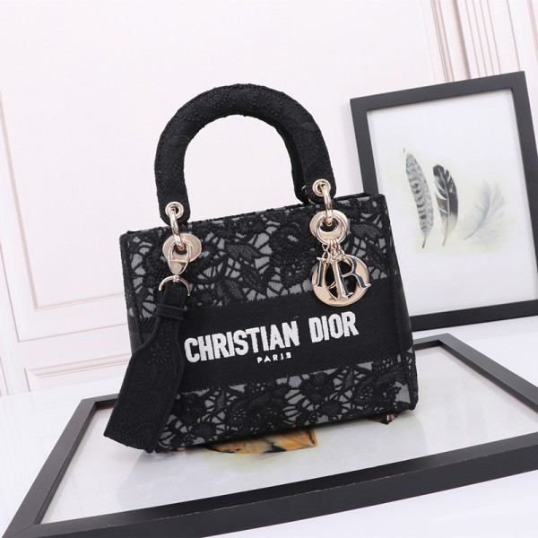 디올 LADY D-LITE 자수 로고 스트랩 미디엄 백 M0565OSEL