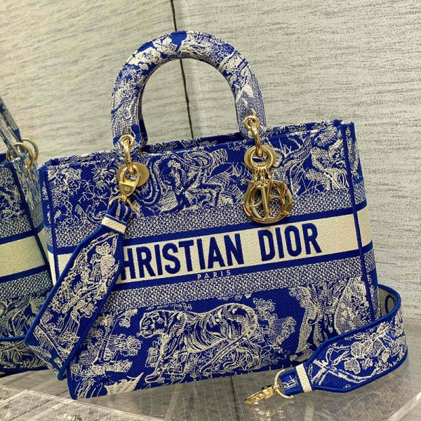 디올 Lady D-Lite 라지 백 BLUE M0566ORGO M932