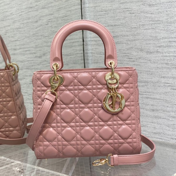 디올 레이디백 호라이즌블루 까나쥬 미디엄 토트백 진핑크 M0565ONGE