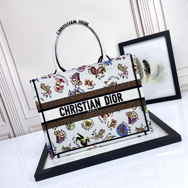 디올 북토트 토트백 미디엄 화이트 드래곤 M1296ZEID