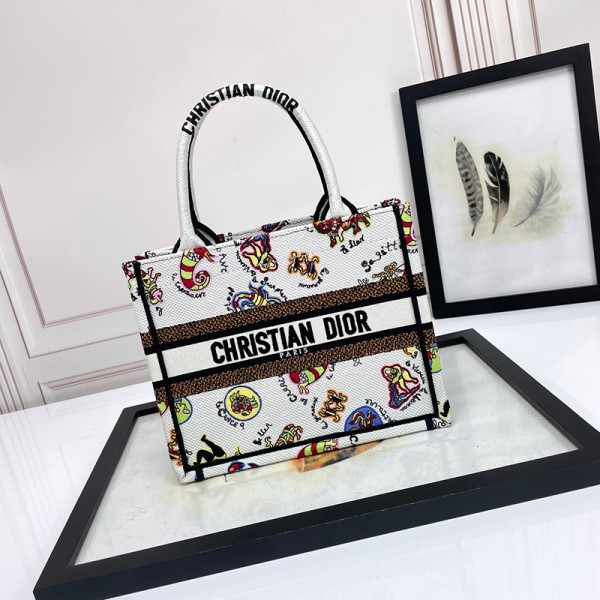 디올 북토트 토트백 스몰 화이트 드래곤 M1296ZEID
