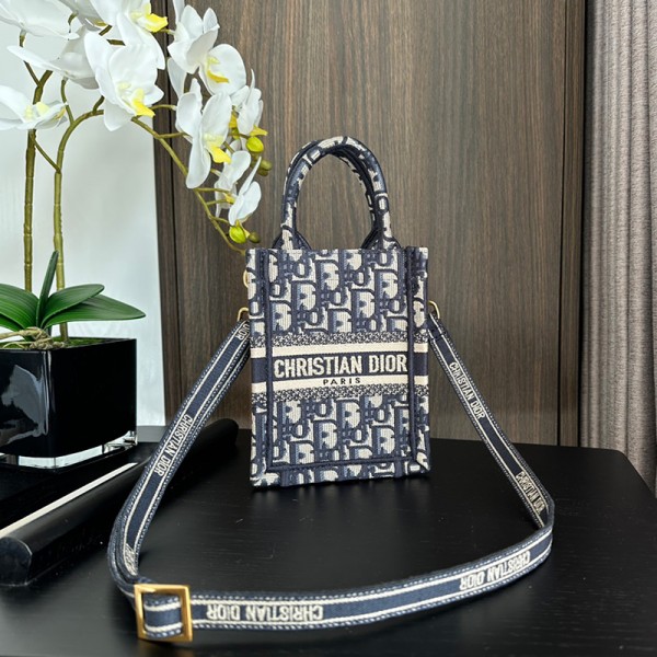 디올 북 토트 자수 미니 휴대폰 백 블루 S5555CRIW