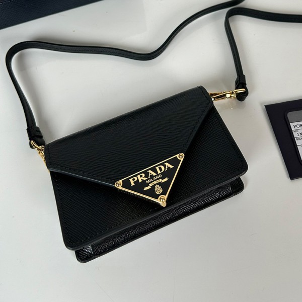 프라다 숄더 스트랩이 있는 가죽 카드홀더 1MR024