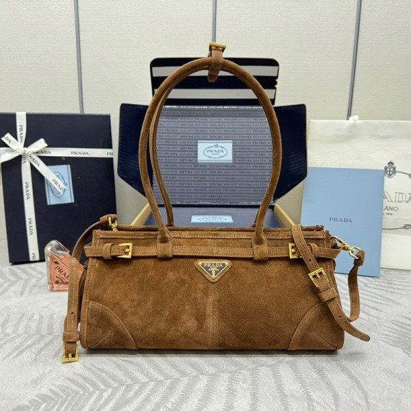 프라다 라지 스웨이드 핸드백 브라운 1BA439 2C4S