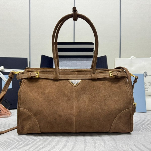 프라다 라지 스웨이드 핸드백 브라운 1BA433 2C4S