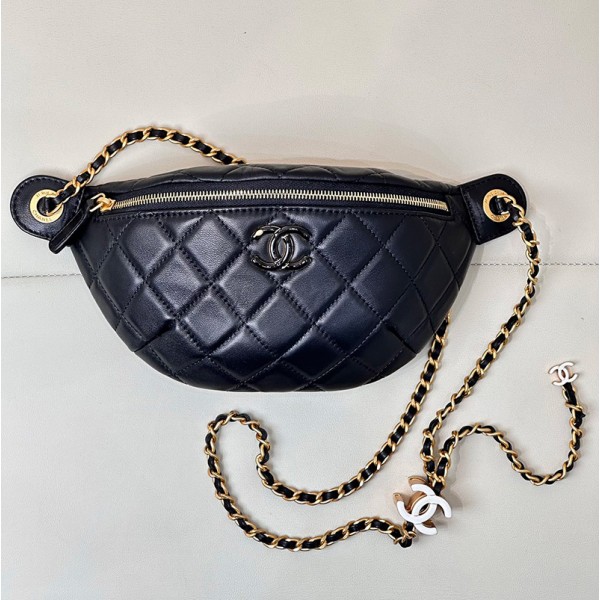 샤넬 웨이스트백 에나멜 샤이니 램스킨 & 골드 메탈 블랙 AP4113-B16915-94305