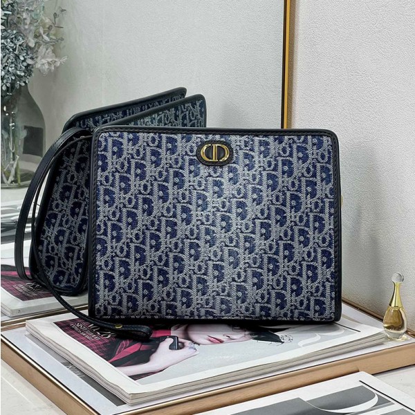 디올 오블리크 30 Montaigne 몽테인 Dea 파우치 블루 데님 S2107UDCE_M49E
