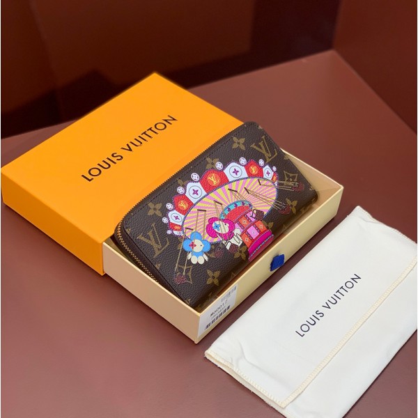 루이비통 지퍼여밈 캔버스 지갑 커플 남녀공용 브라운 M69753