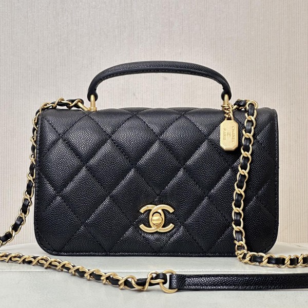 샤넬 탑핸들 미니 플랩백 블랙 캐비어 AS4284 B13697 94305