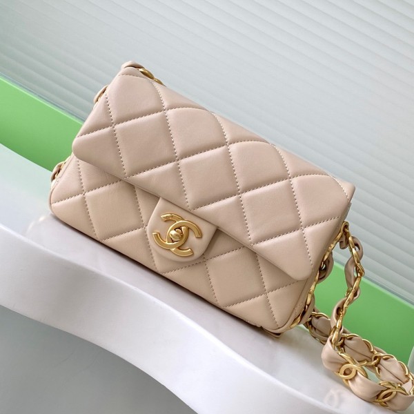 샤넬 스몰 플랩 백 램스킨, 골드 메탈 베이지 AS5174