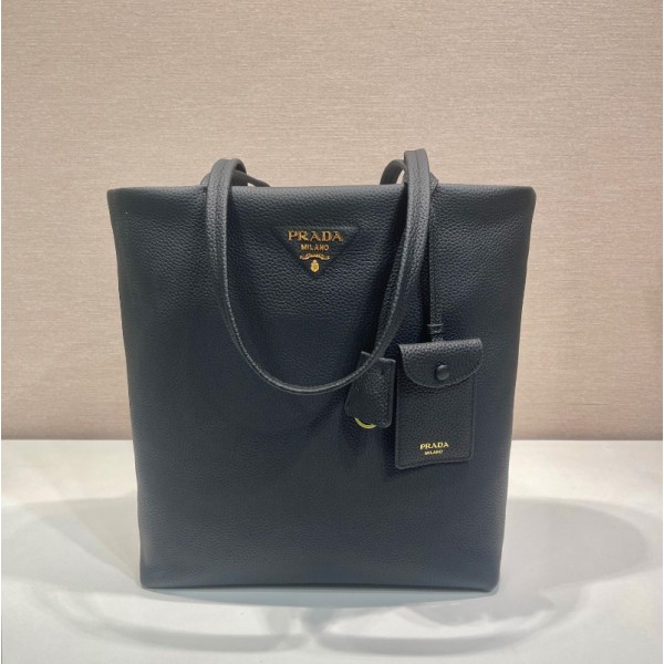 프라다 블랙 그레인드 가죽 쇼핑백 1BG550