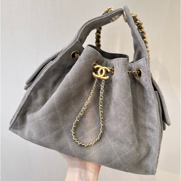 샤넬 25C 크루즈 호보백 25백 스웨이드 스몰 CC로고 포켓 체인 모피 그레이 AS5293