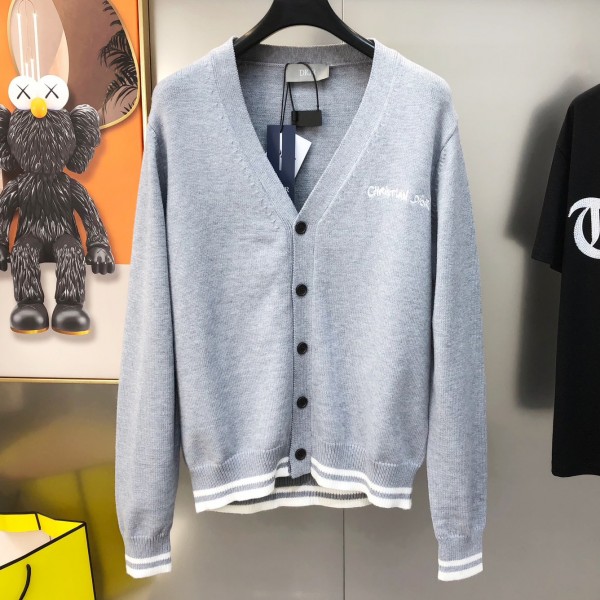 디올 태그 로고 자수 카디건 그레이 알파카 울 가디건 남성 자켓 443M204AT879