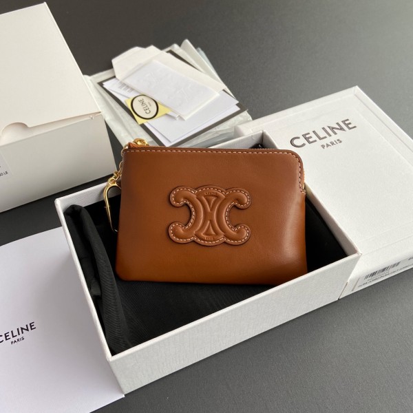 셀린느 트리옹프 파우치 카드 지갑 탠 퀴르 여성 동전지갑 10C663DR8
