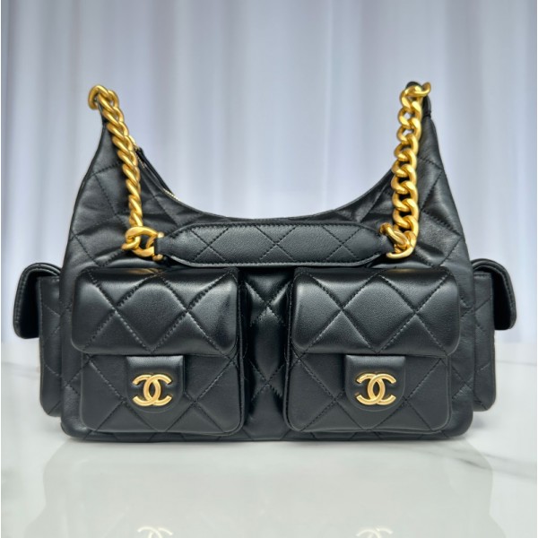 샤넬 호보 핸드백 메탈릭 카프스킨 실버 메탈 여성 5컬러 AS5528