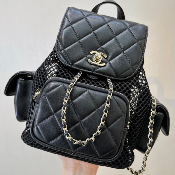 샤넬 25SS 메쉬 백팩 네트 체인 3포켓 듀마 백팩 망사 램스킨 블랙 AS5484