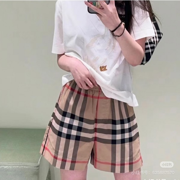 버버리 체크 코튼 쇼츠 아카이브 바지 베이지 80710911