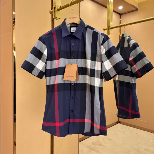 버버리 체크 코튼 셔츠 네이비 남여공용 80795921 > 의류
