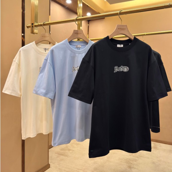 버버리 플리스 레터링 로고 라운드 반팔 여성 티셔츠 3컬러 80982041