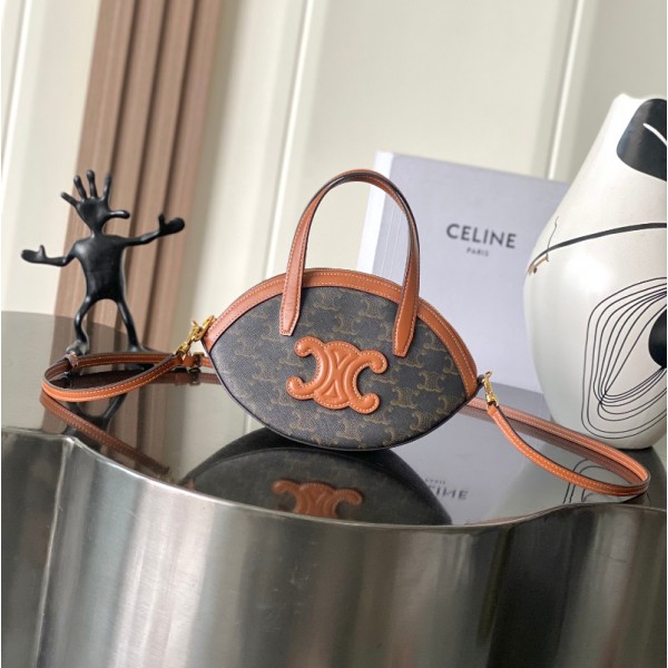 셀린느 오발 백 트리옹프 캔버스 카프스킨 탄 122262BZJ