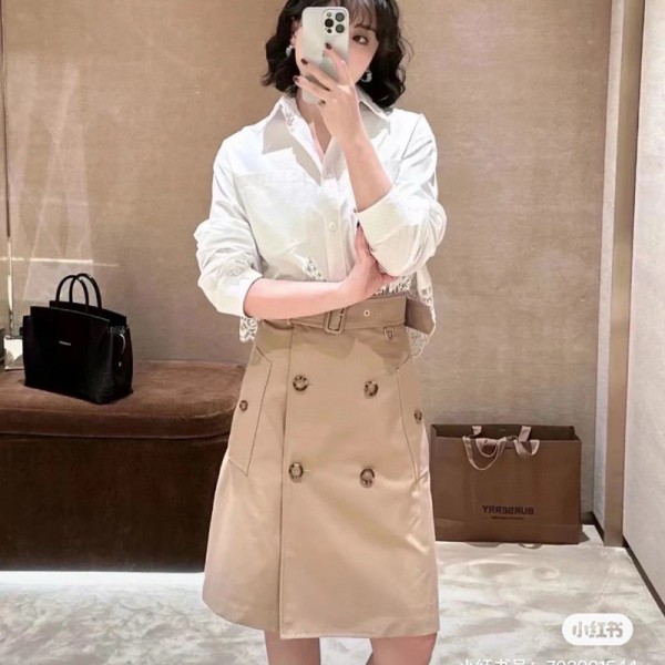 버버리 솔리드 버튼 벨트 디자인 롱 캐주얼 롱스커트 80632101