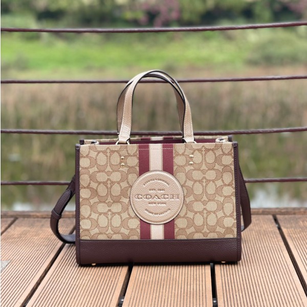 코치 뎀프시 토트 22 시그니처 자카드 스트라이프 숄더백 C8406