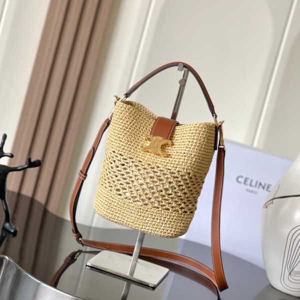 셀린느 라피아 트리오페 스몰 루이즈 버킷백 119742GNS