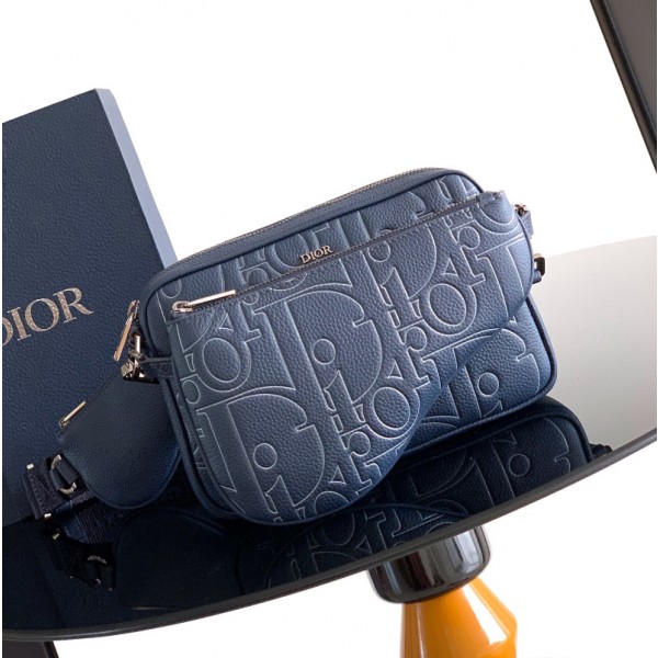 디올 새들 트리플 파우치 네이비 블루 1ADPO276LGP