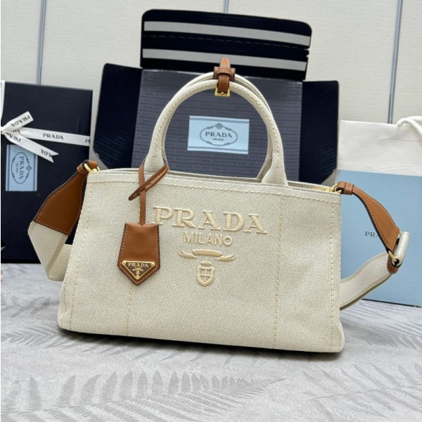 프라다 샌드 캔버스 토트백 패브릭 린넨 가방 1BG554