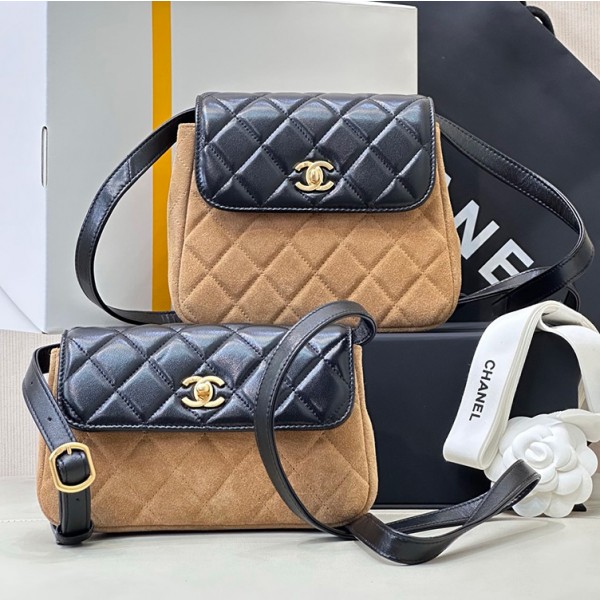 샤넬 25A 공방 스웨이드 투톤 숄더백 쇼핑백 스웨이드 카프스킨 3컬러 AS5634