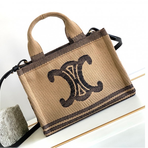 셀린느 소프트 쇼퍼 백 트리옹프 캔버스 카프스킨 탠 숄더백 123912GXC