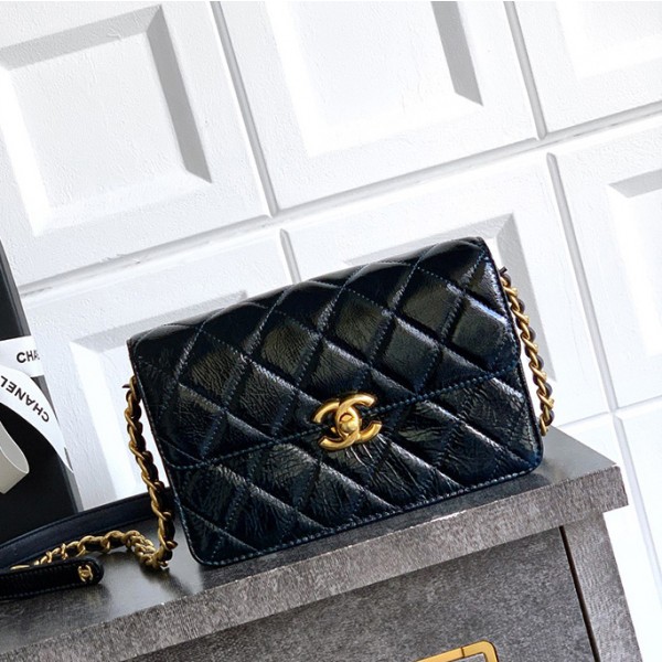 샤넬 미니 플랩 백 페이턴트 램스킨, 골드 메탈 AS5618