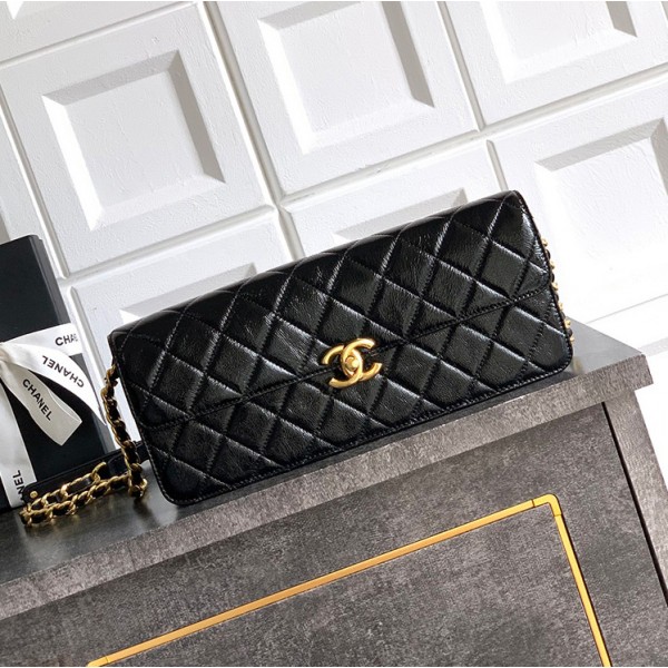 샤넬 라지 플랩 백 페이턴트 램스킨, 골드 메탈 블랙 AS5642
